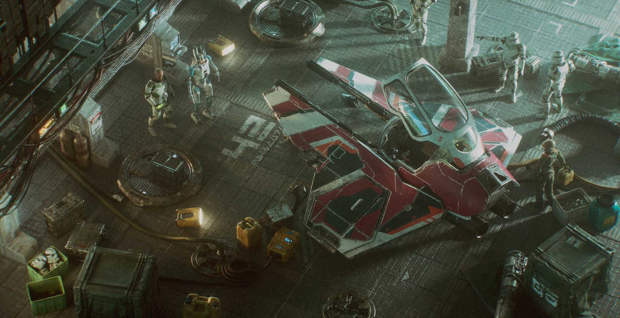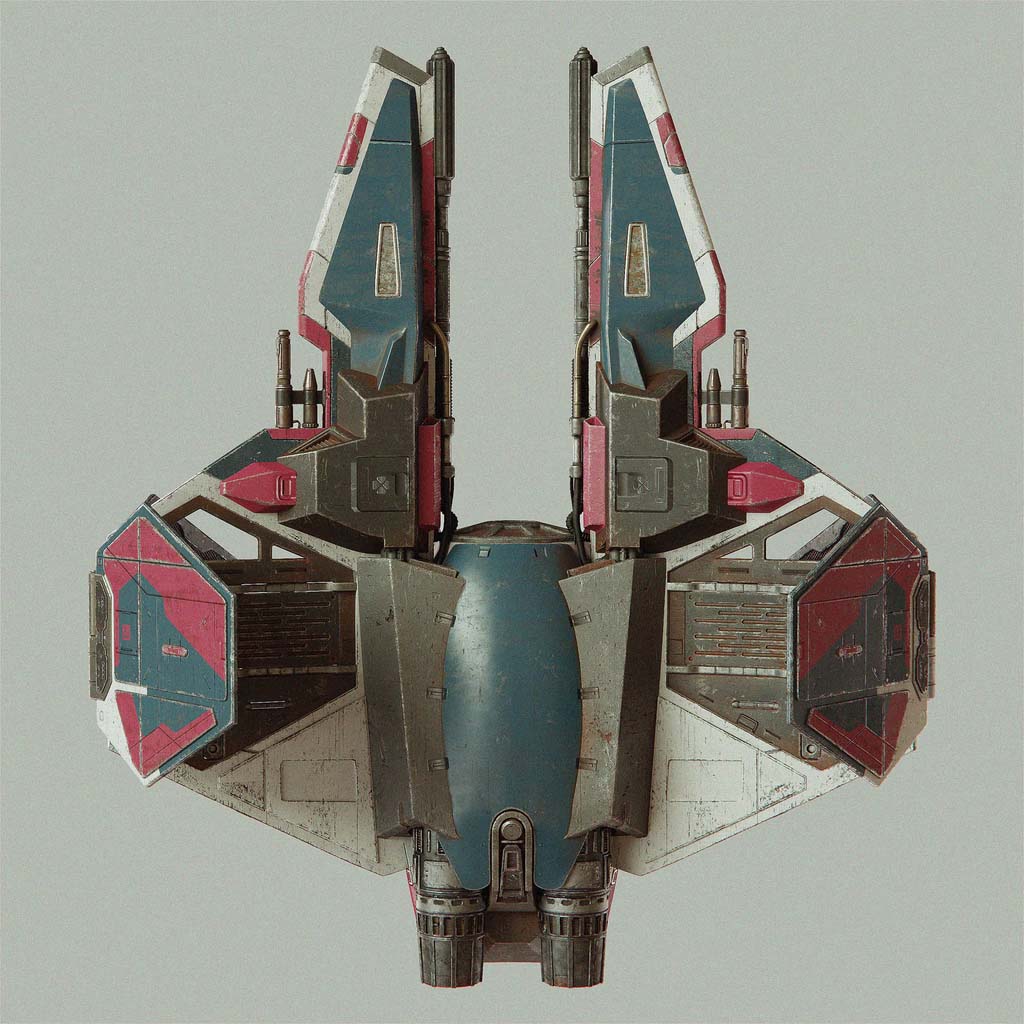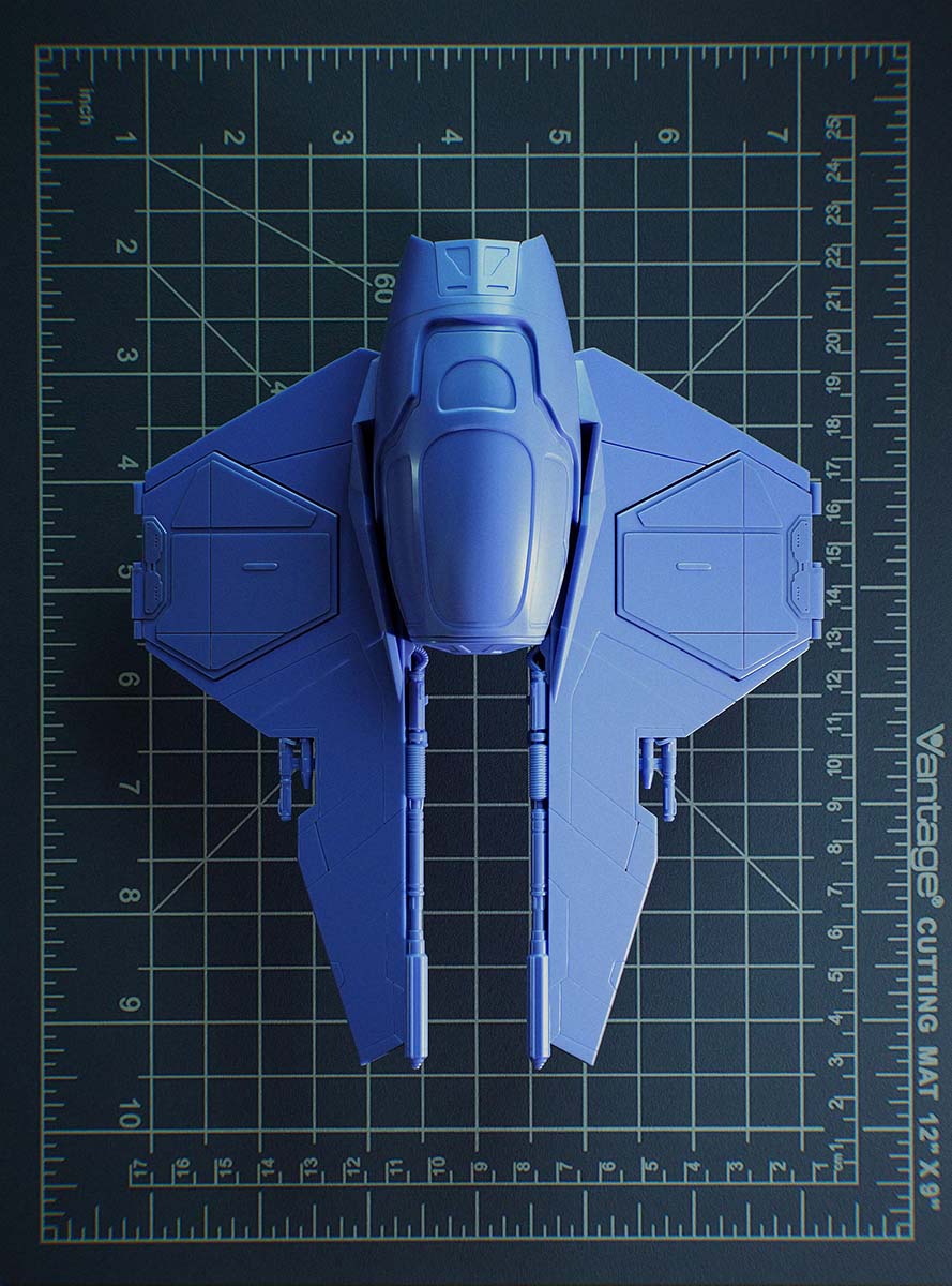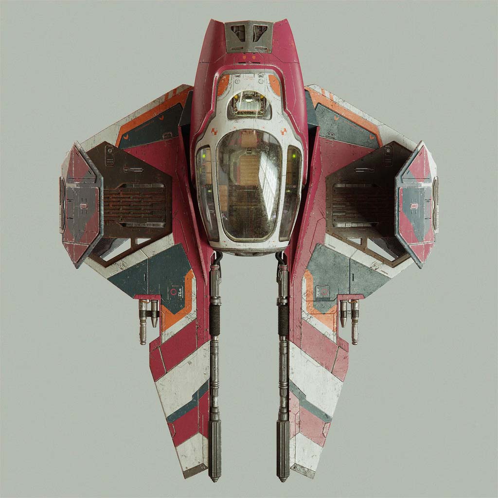 One of my favorite sci-fi spaceship concepts remains the Eta-2 Interceptor. While I’m unsure of the original designer, the ship was created for Star Wars: Episode III, and I drew most of my inspiration from the cross-section drawings by Hans Jenssen and Richard Chasemore. I began modeling the ship in my free time at university and later produced concept art visuals based on the model.