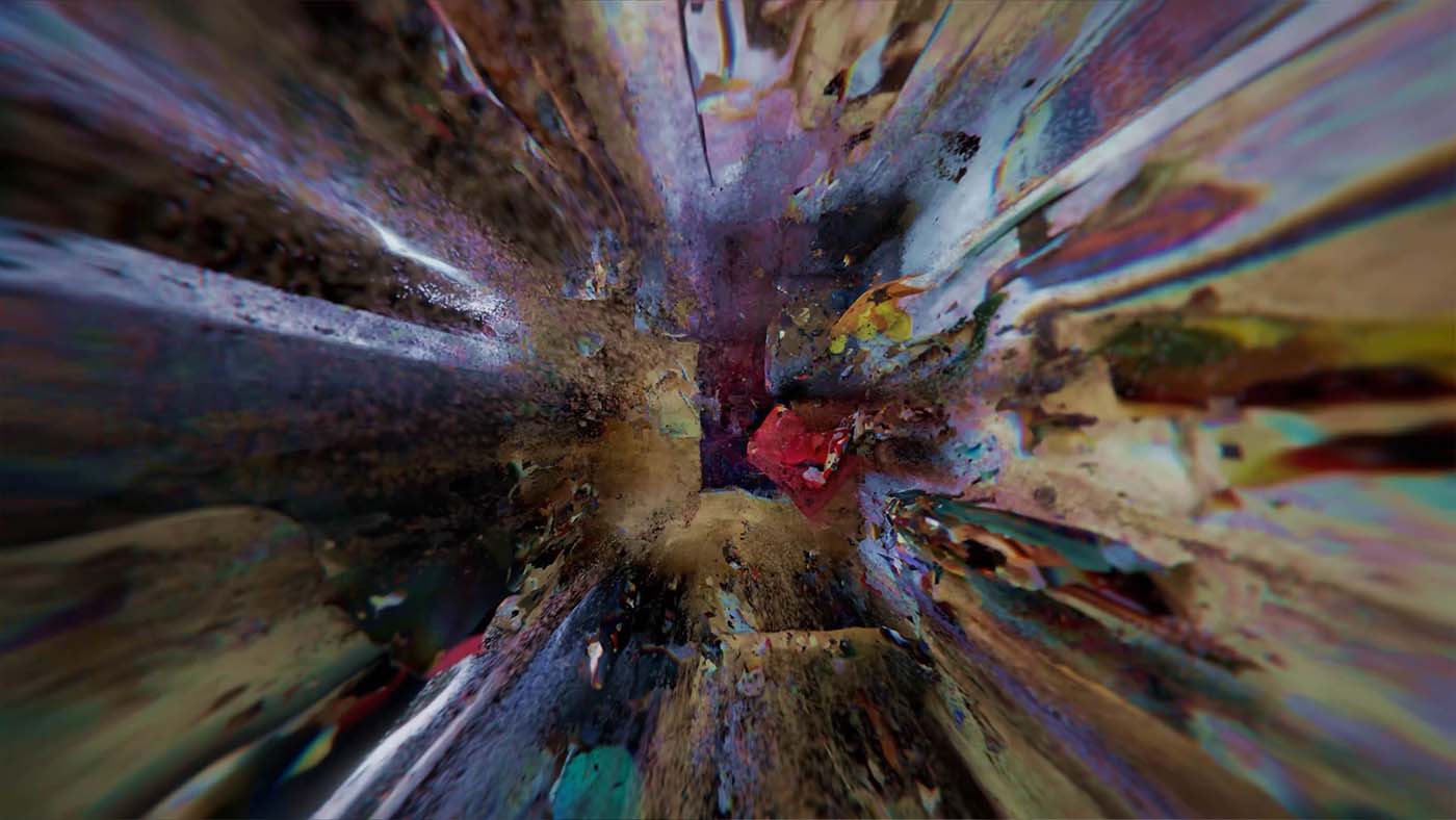 Through camera movement, particle simulations, and abstract transitions, processes such as remembering, forgetting, and reconstruction are represented in a non-narrative, dreamlike visual language.
